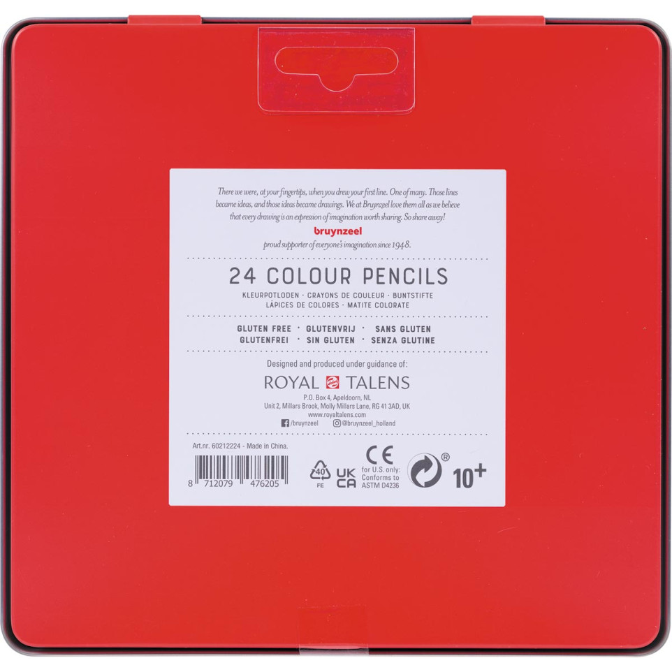 Coffret de 24 crayons de couleur Bruynzeel, livré dans une boîte métallique. Adaptés pour le dessin, le coloriage et l’expression artistique, ces crayons conviennent aux artistes, étudiants et enfants grâce à leur prise en main confortable et leur qualité professionnelle.