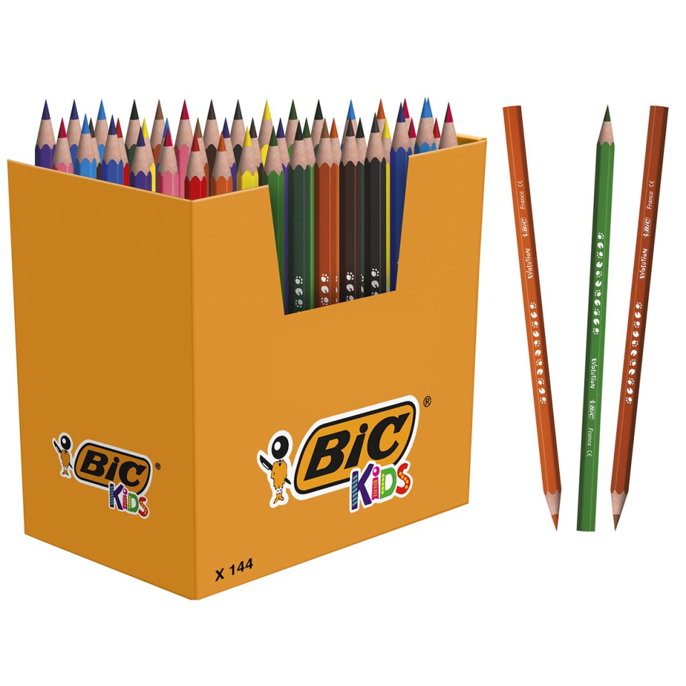 Les crayons de couleur Bic Kids Ecolutions Evolution en classpack de 144 exemplaires conviennent aux enfants dès 5 ans pour le dessin et la coloration en classe ou à la maison. Référence 301858, ils offrent une grande quantité pour un usage collectif.