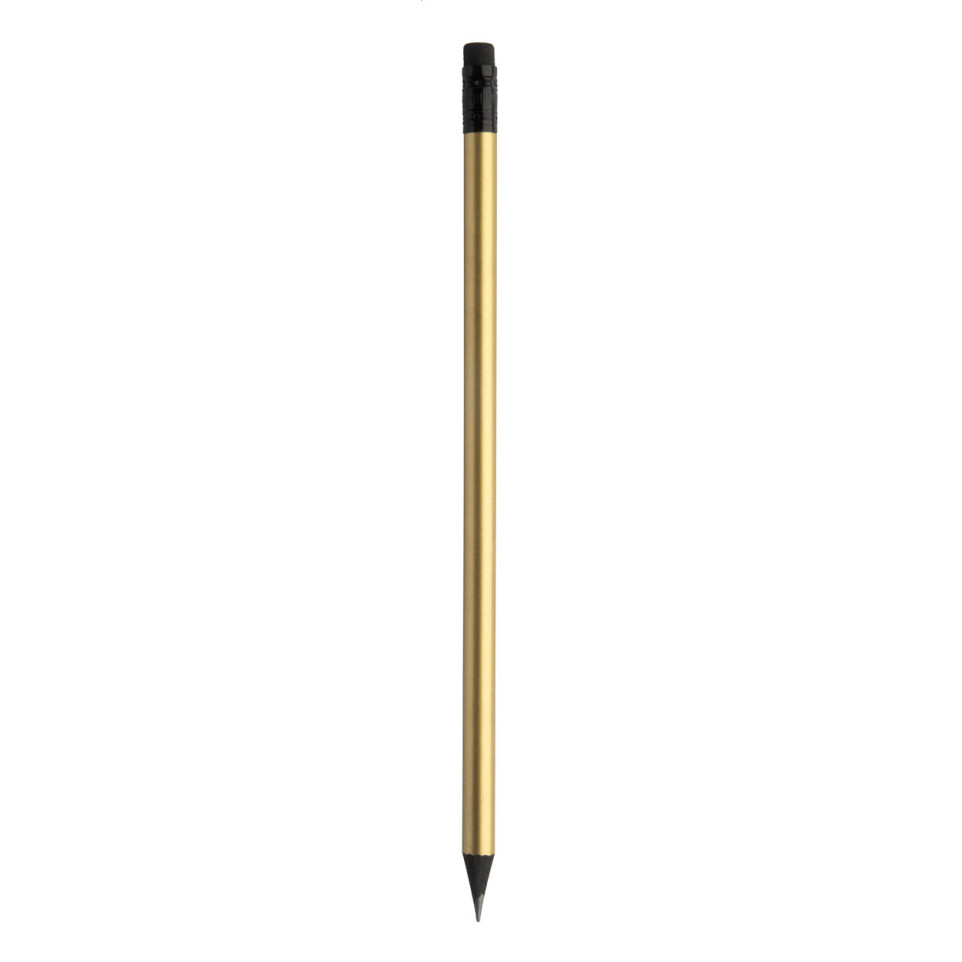 Crayon à mine de plomb avec finition métallisée dorée, doté d'une gomme noire à son extrémité. Idéal pour l'écriture quotidienne, les croquis et la prise de notes en environnement professionnel ou scolaire.