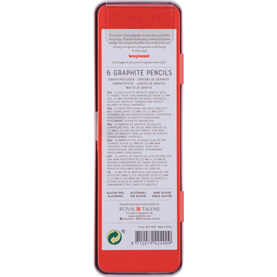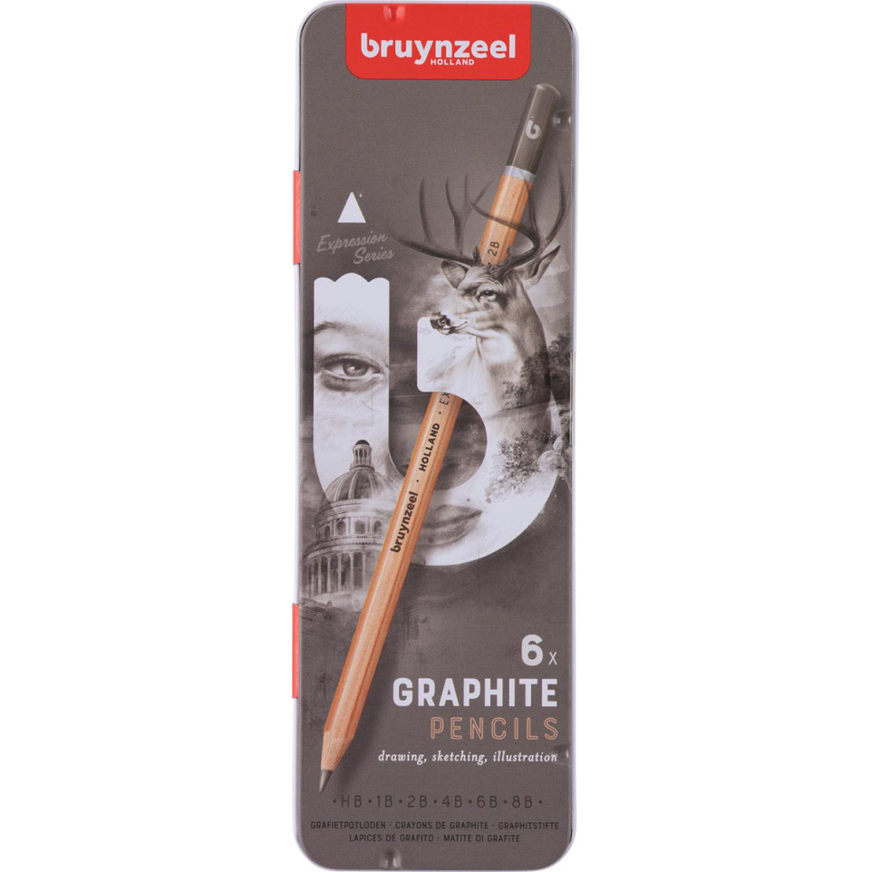 Le set Bruynzeel crayon graphite Expression comprend 6 crayons de haute qualité destinés aux artistes, créateurs et amateurs de dessin. Présenté dans une boîte en métal, il propose une gamme de duretés adaptée aux croquis, lettrages et journalisation.