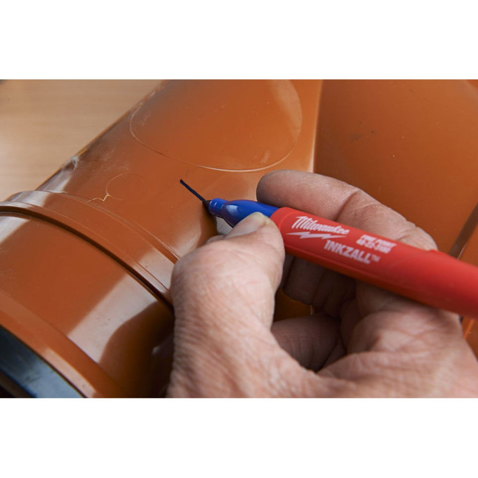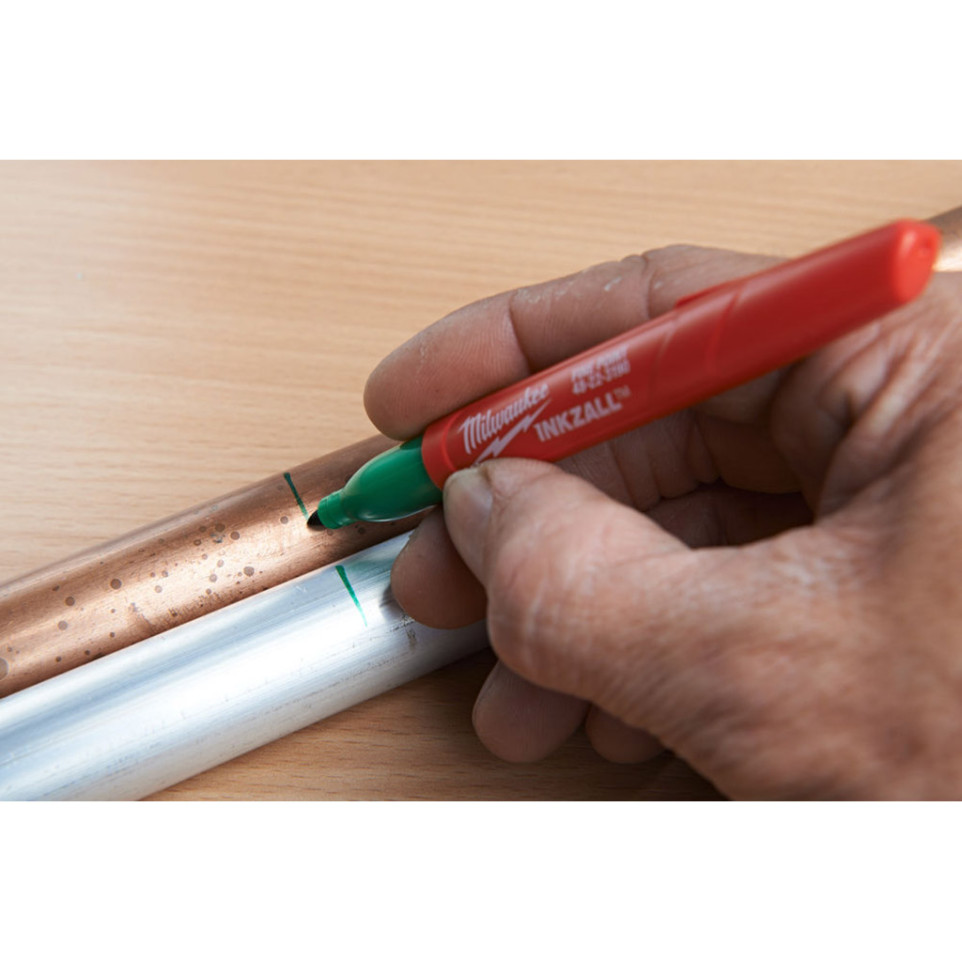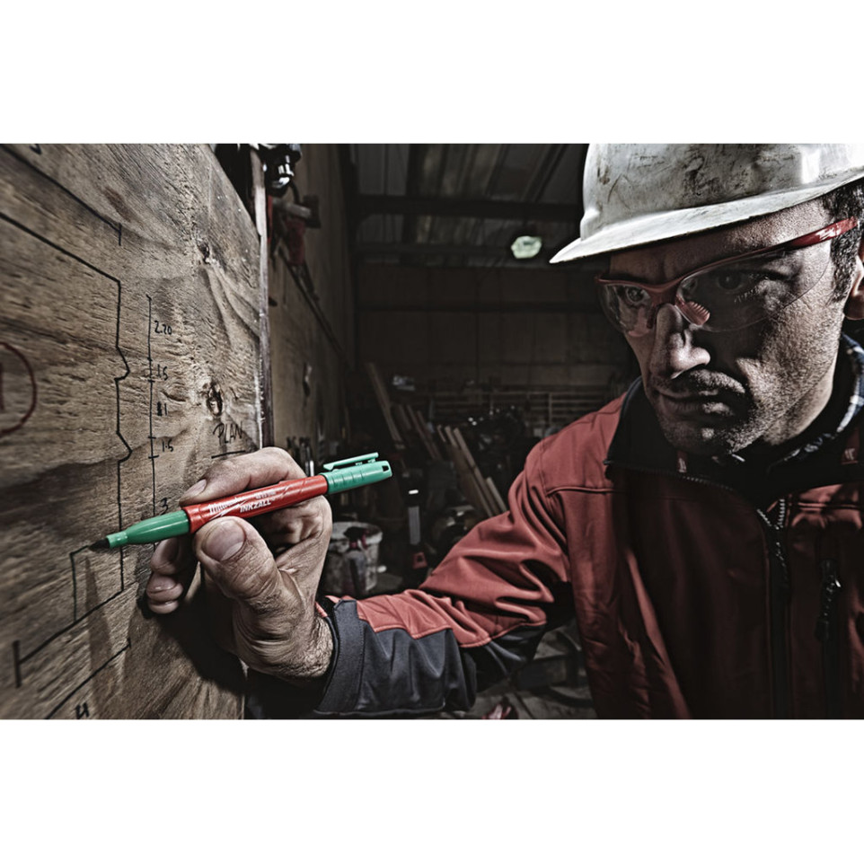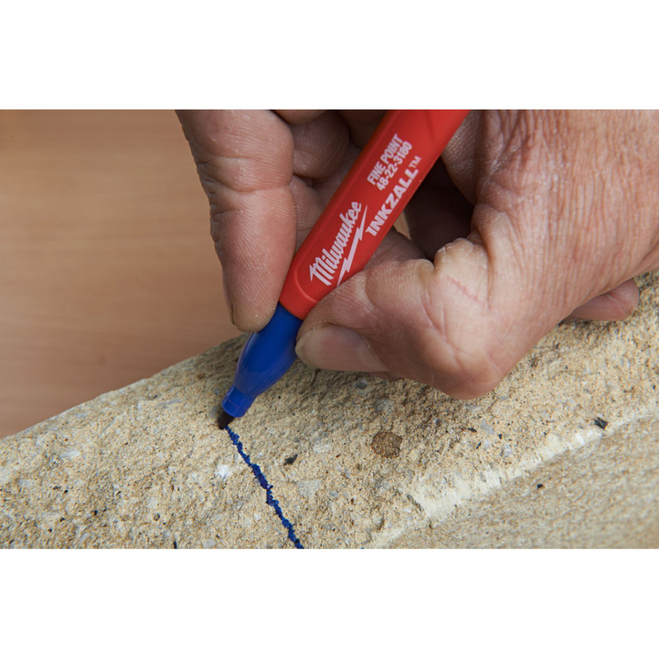 Retirez le bouchon, appliquez la pointe sur la surface de votre choix, même sale ou humide. Le marqueur Milwaukee INKZALL assure une écriture nette, rapide et durable sur la plupart des matériaux utilisés sur les chantiers ou en atelier. Après usage, replacez le bouchon pour préserver la pointe.