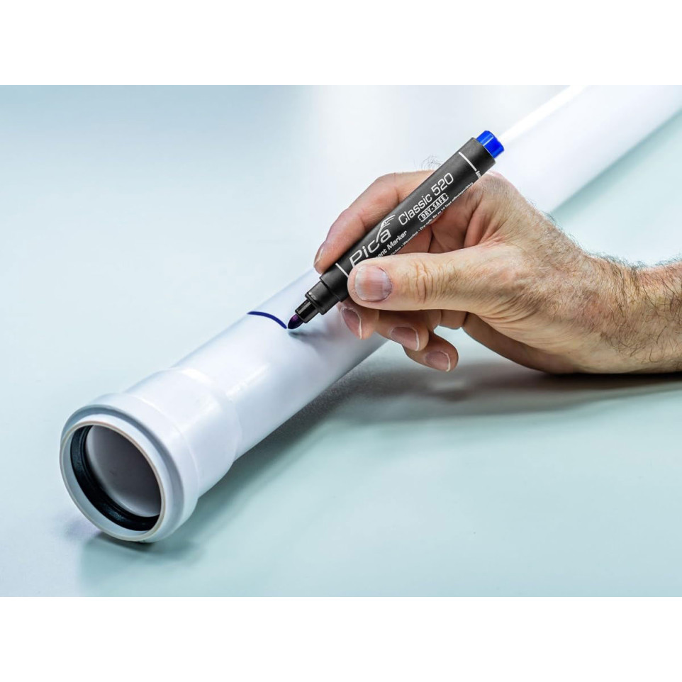 Marqueur permanent Pica classic à pointe ronde bleue, conçu pour un marquage clair et durable sur presque toutes les surfaces. Idéal pour les professionnels du bâtiment, de l'industrie et de l'artisanat, il offre une utilisation fiable pour des applications variées.
