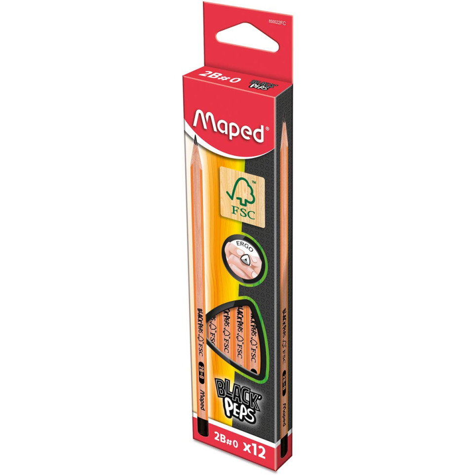 Crayon graphite Maped Black'Peps 2B sans gomme, conçu pour l’écriture et le dessin précis. Sa forme triangulaire ergonomique assure une prise en main stable et confortable, idéale pour un usage scolaire ou professionnel.