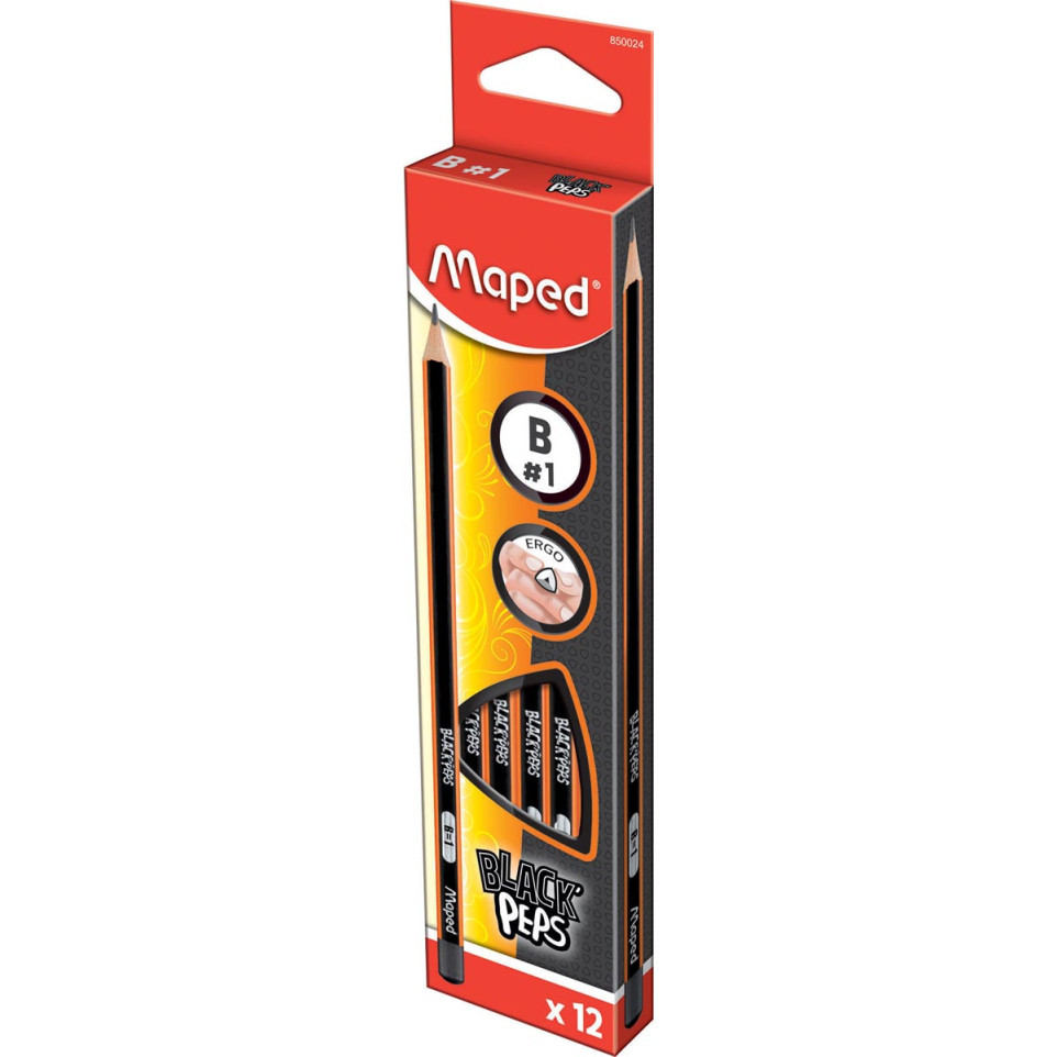 Le crayon Maped Black'Peps B sans gomme offre une prise en main confortable grâce à sa forme triangulaire ergonomique. Idéal pour l’écriture ou le dessin, il convient aussi bien aux professionnels qu’aux élèves.