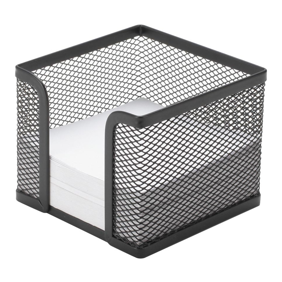 Cube-mémo Q-CONNECT en métal noir, conçu pour accueillir des blocs-notes au format 9 x 9 cm. Idéal pour garder des notes à portée de main sur votre bureau, à la maison ou au travail.