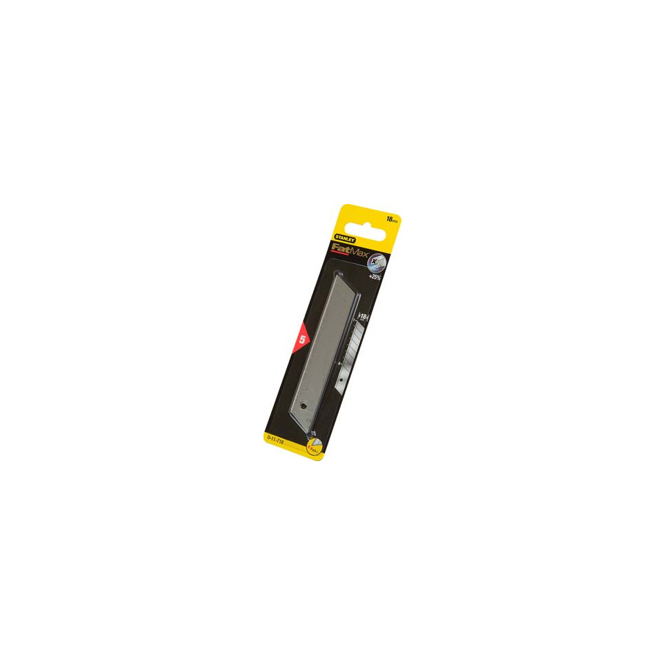 Lames à casser Stanley FATMAX 18mm, conçues pour le remplacement sur les cutters standards 18mm. Lot de 10 lames, pratique pour les professionnels et le bricolage, compatible avec la plupart des cutters à segments.