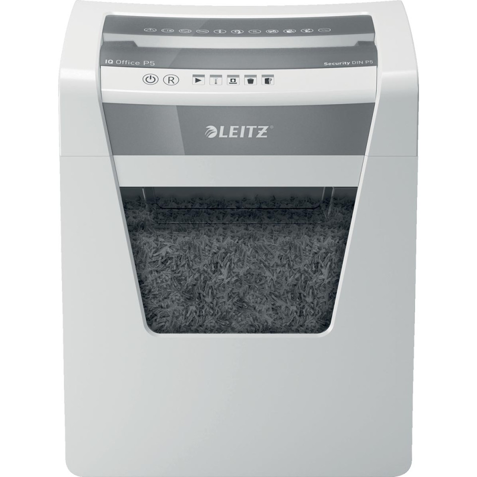 Le destructeur de documents Leitz IQ Office P5 est conçu pour la destruction sécurisée de documents en milieu professionnel, capable de traiter jusqu'à 10 feuilles à la fois grâce à sa coupe micro de 2 x 15 mm offrant un niveau de sécurité P-5.