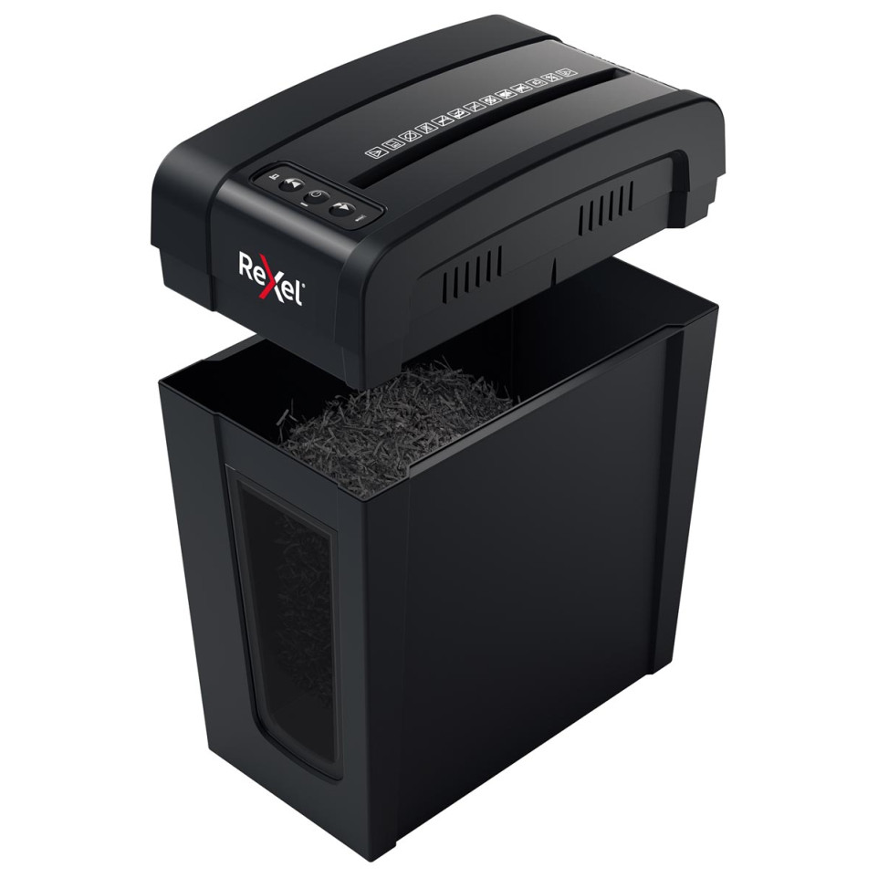 Le Rexel Secure X8-SL est un destructeur de documents à coupe croisée, adapté pour une utilisation personnelle ou en petit bureau, offrant une sécurité P-4 pour la destruction confidentielle de documents.