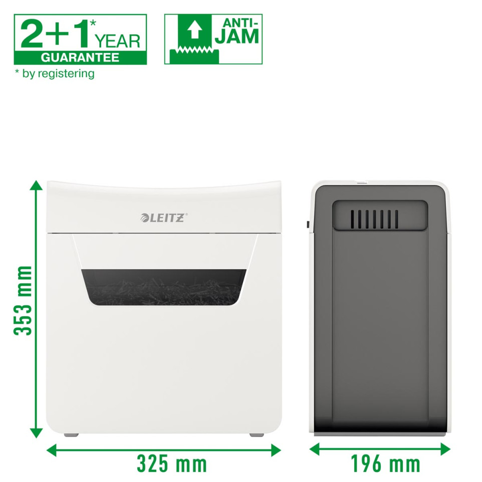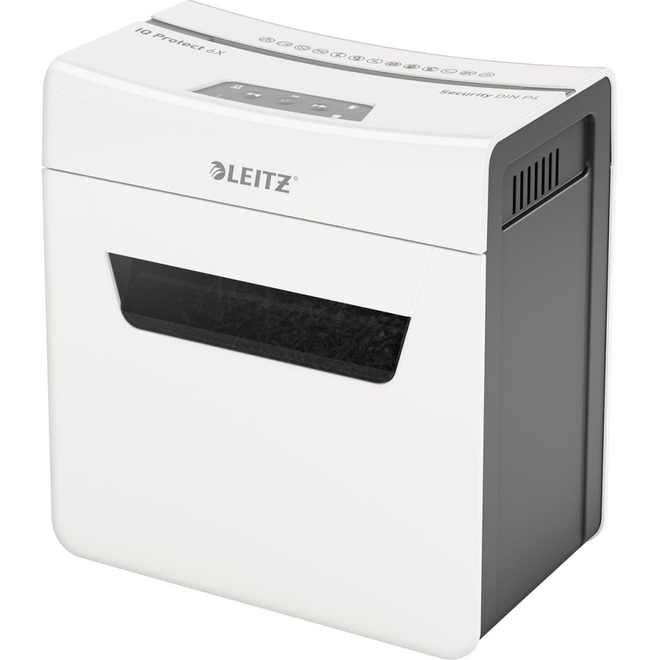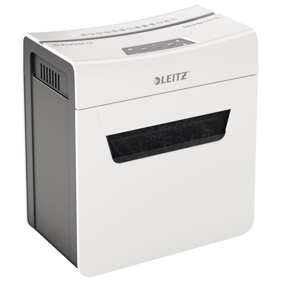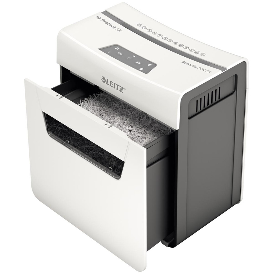 Le Leitz IQ Protect destructeur de documents Premium 6X est un appareil compact conçu pour une utilisation personnelle ou de petit bureau, permettant de détruire efficacement les documents sensibles grâce à une coupe croisée assurant un niveau de sécurité P-4.