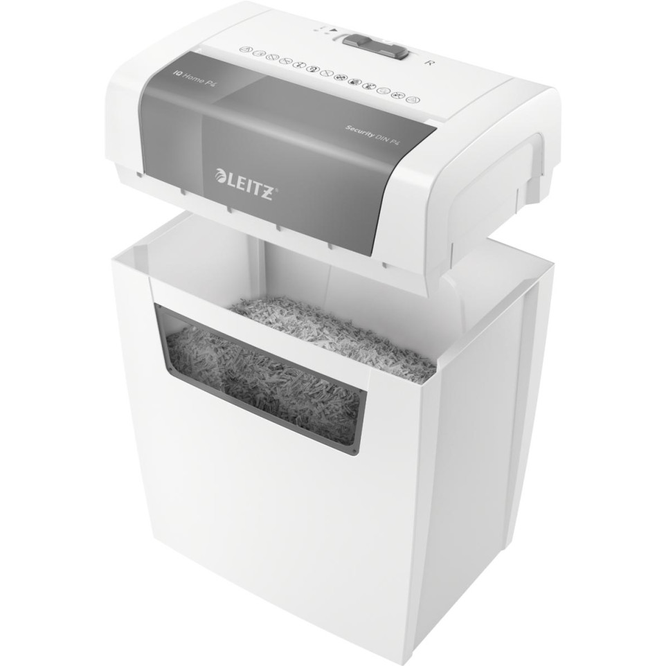 Le Leitz IQ Home destructeur de documents P4 est conçu pour une destruction sécurisée des documents à la maison ou au bureau. Offrant une coupe croisée efficace, il protège la confidentialité des données et s’intègre discrètement dans tout espace de travail.