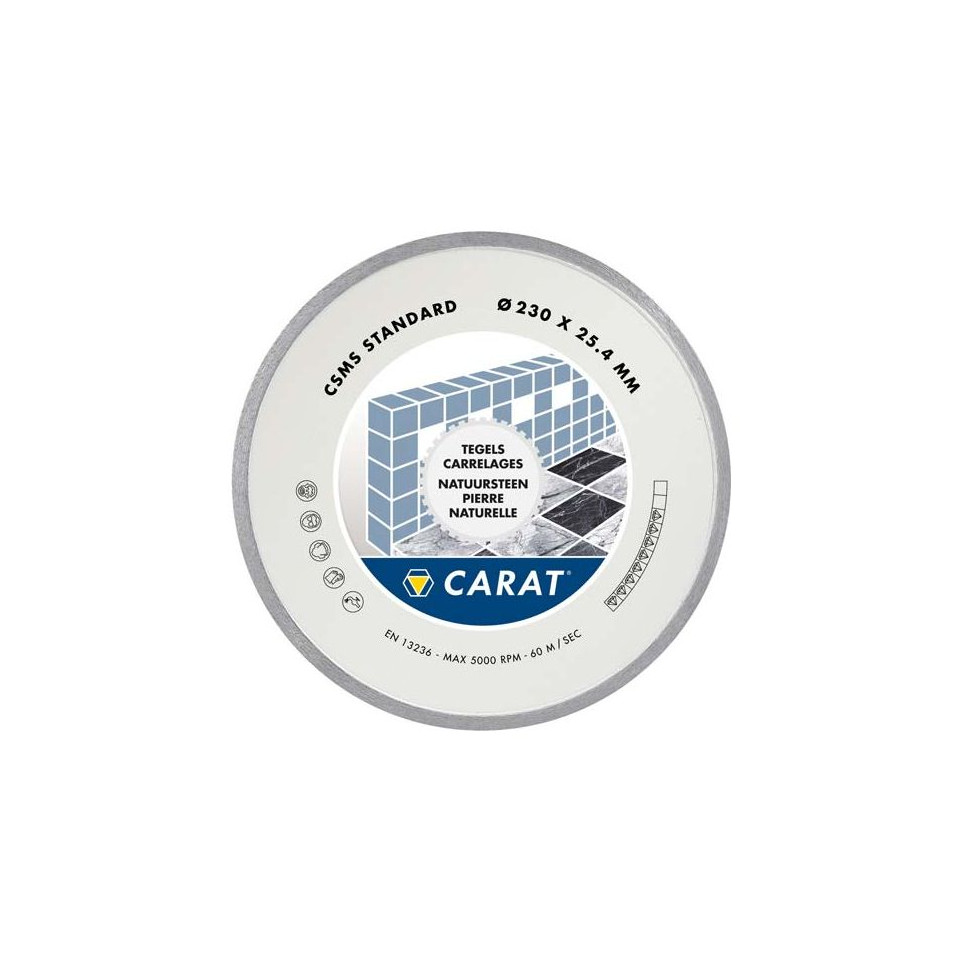 Disque diamant Carat type CSMS Ø180 conçu pour la coupe précise de faïences. Idéal pour les travaux de rénovation ou d’installation nécessitant une finition nette sur des matériaux céramiques tendres. Non adapté aux carrelages durs.