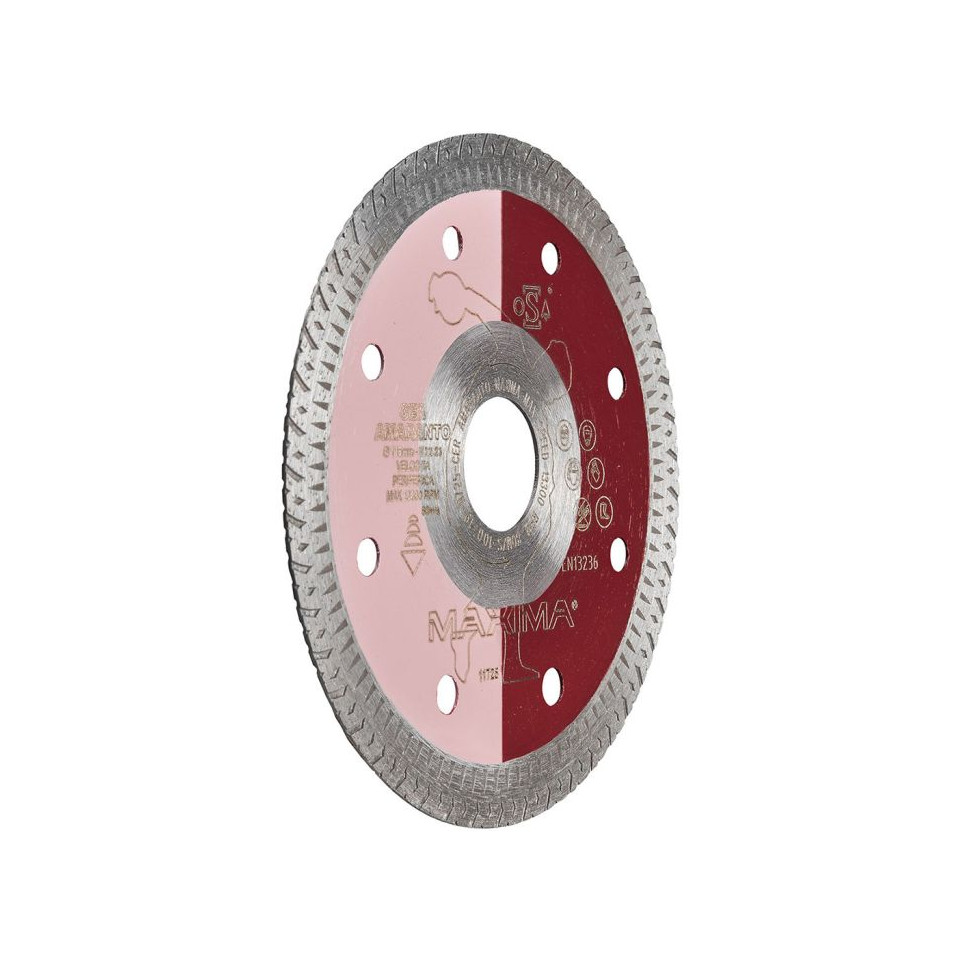 Disque diamant Maxima Cer Amarante Ø125mm conçu pour la coupe de matériaux céramiques, offrant une qualité de coupe exceptionnelle, une grande précision, et un excellent refroidissement grâce à sa couronne diamantée optimisée. Convient aux usages professionnels exigeant performance et fiabilité.