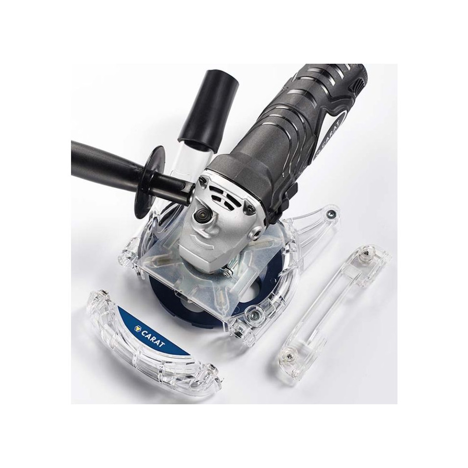Le carter anti-poussières Carat DustProtect est conçu pour meuleuses d'angle Ø 125 mm, offrant une protection et une aspiration rapide de la poussière pour un travail plus efficace.