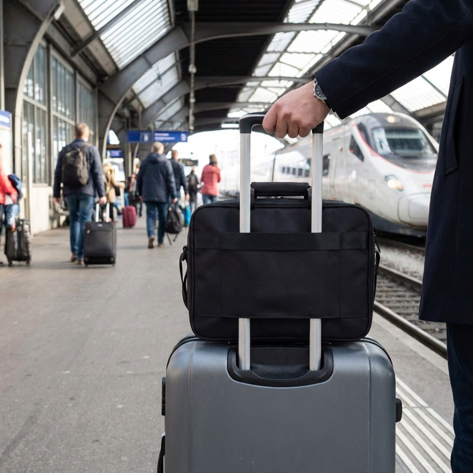 Ce sac est idéal pour les déplacements professionnels ou scolaires, permettant de transporter facilement un ordinateur portable et d'autres accessoires essentiels tout en restant attaché à une valise.