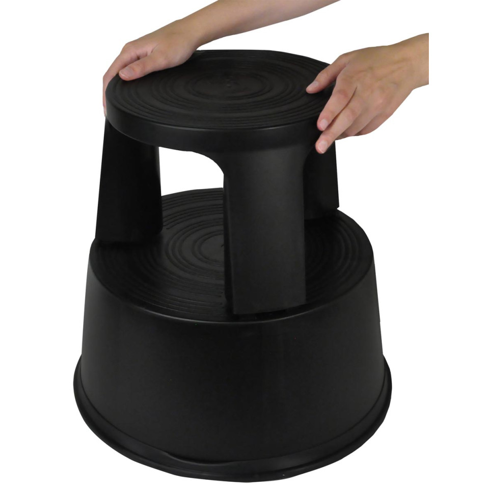 Tabouret Desq en plastique ABS, conçu pour les environnements intérieurs professionnels ou domestiques nécessitant un accès facilité en hauteur. Doté de roulettes, il assure mobilité et stabilité lors des déplacements.