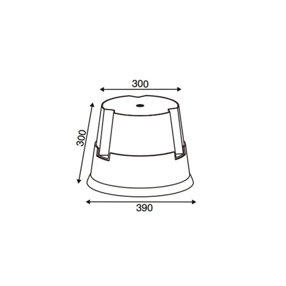 Hauteur : 30 cm, diamètre supérieur : 30 cm, diamètre du fond : 39 cm.