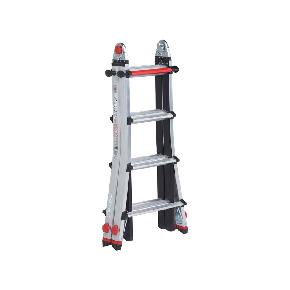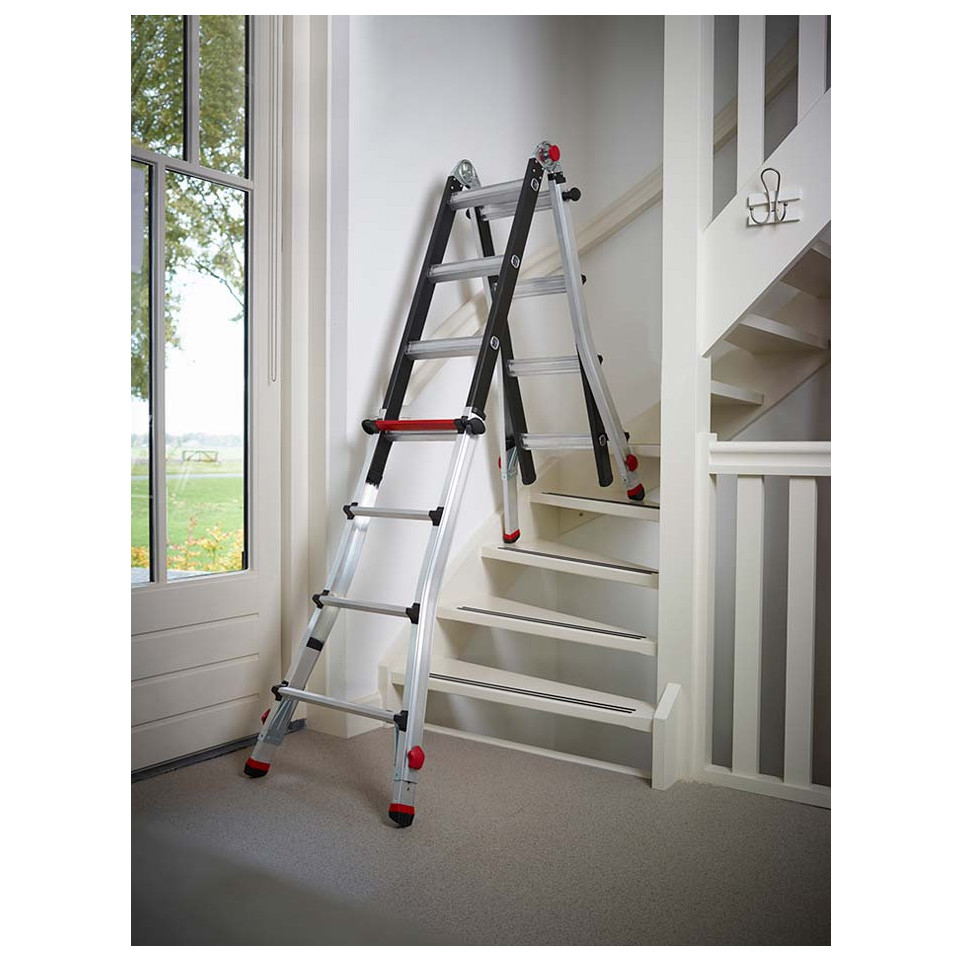 L’échelle se déploie facilement et peut être configurée en position droite ou en mode escabeau. Réglez la hauteur de chaque pied individuellement selon le dénivelé du sol, puis verrouillez les sections pour garantir stabilité et sécurité. Utilisée par les professionnels et les particuliers pour accéder à des hauteurs variées, même dans des environnements exigus ou accidentés.