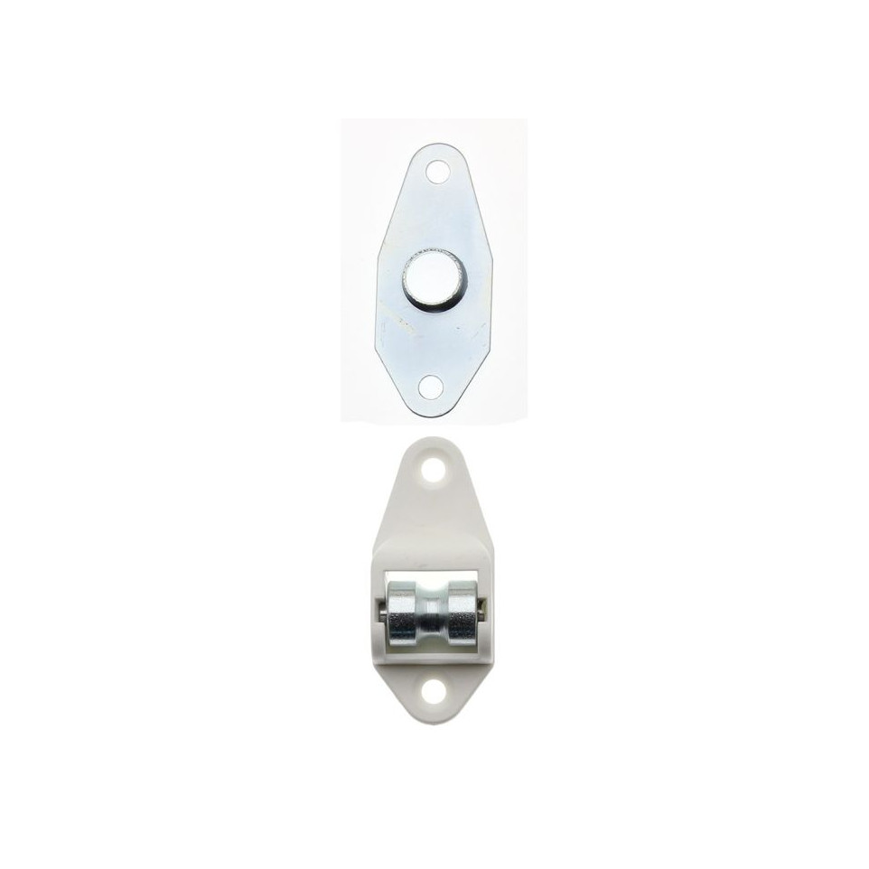 Mini guide-corde vertical blanc avec plaque, conçu pour faciliter le passage du cordon dans le caisson d’un volet roulant. Idéal pour les installations neuves ou les remplacements, il convient aux volets roulants domestiques utilisant des cordons de petite taille.