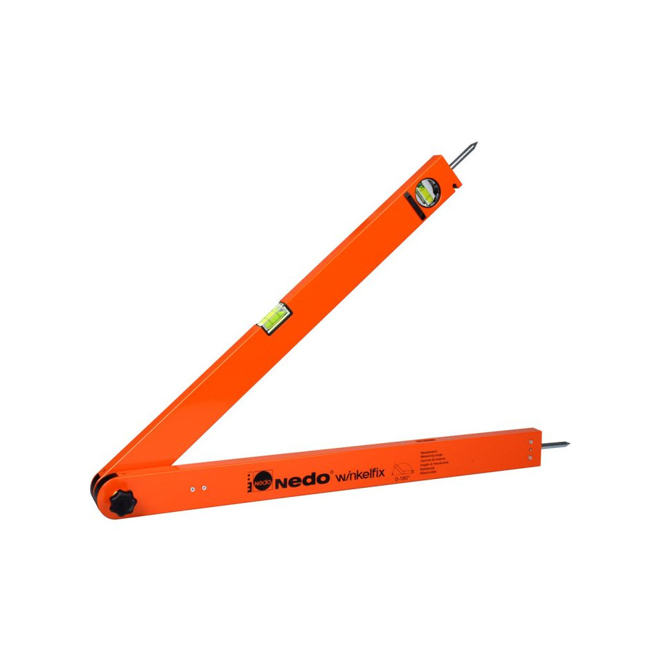 Le rapporteur d'angle à pointe NEDO WINKELFIX permet de mesurer rapidement et avec précision les angles de 0 à 180°, grâce à une lecture immédiate sur affichage analogique. Il est idéal pour les professionnels du bois, du vitrage et de l'ajustage.