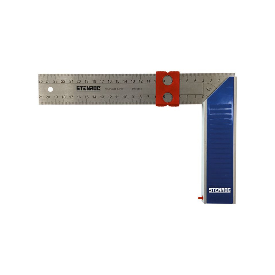 Équerre avec onglet de 350mm adaptée aux professionnels et aux bricoleurs exigeant une mesure précise et un tracé fiable des angles droits et des onglets lors de travaux de menuiserie, charpente ou construction.