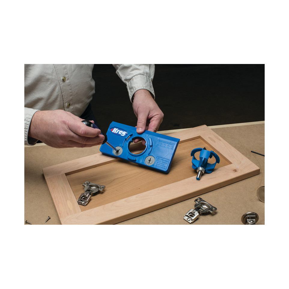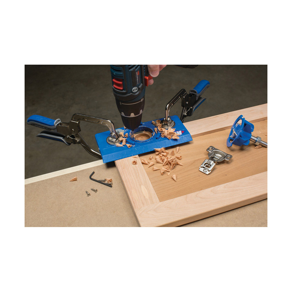 Le gabarit de charnière cachée Kreg KHI-HINGE-INT permet de percer rapidement et avec précision les trous nécessaires à l'installation de charnières d’armoire invisibles, idéales pour les meubles de cuisine, salle de bains ou bureau.