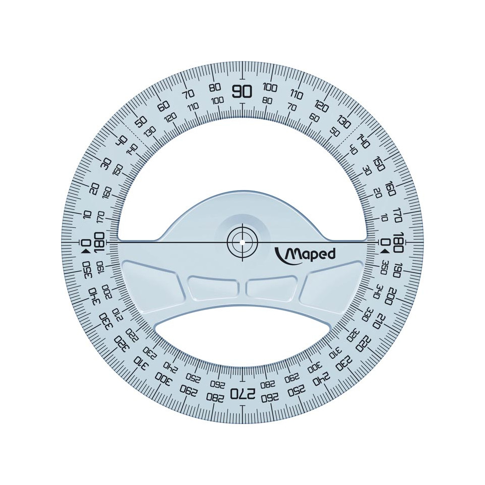 Rapporteur circulaire Maped Geometric 360°, diamètre 12 cm, conçu pour les mesures angulaires précises en milieu scolaire, bureautique ou professionnel. Convient aux tracés géométriques, dessins techniques et calculs de mesures d’angles.