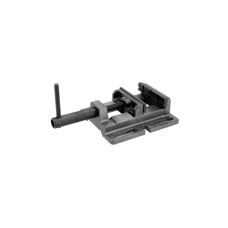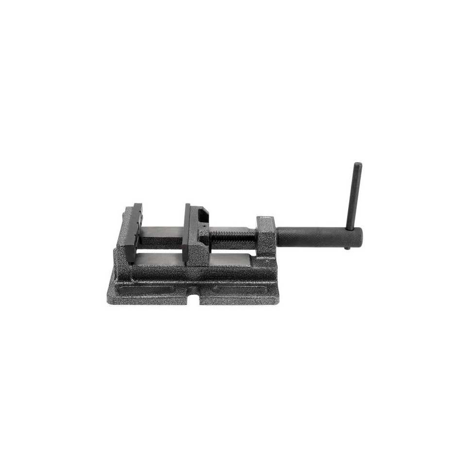 Placez l’étau sur la table de la perceuse à colonne, puis fixez-le à l’aide de son système de serrage. Ouvrez les mâchoires à la dimension souhaitée, insérez la pièce à travailler, serrez fermement et commencez le perçage en toute sécurité.