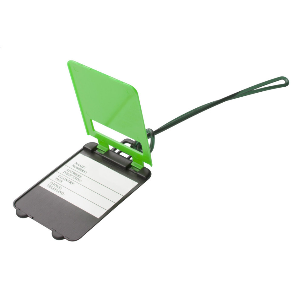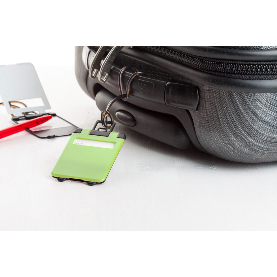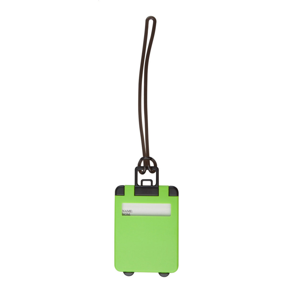 Étiquette à bagages en plastique coloris vert citron, conçue pour identifier facilement vos valises lors de vos voyages professionnels ou personnels. Pratique et légère, elle s’attache rapidement à toute poignée de bagage.