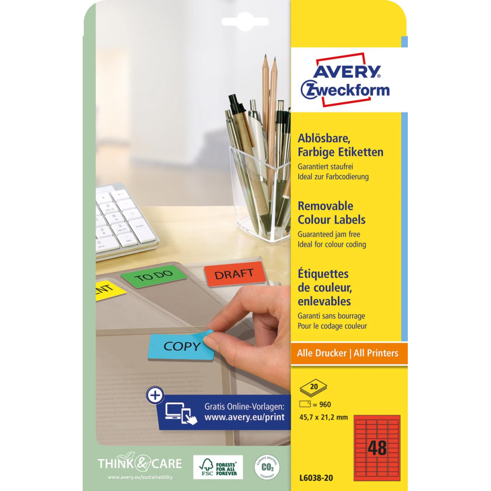 Les étiquettes mini rouges Avery Zweckform L603820 sont conçues pour organiser et classer efficacement pochettes, brochures ou servir de petits repères sur des enveloppes. Leur format compact en planches A4 de 48 étiquettes facilite le repérage visuel et l’organisation.