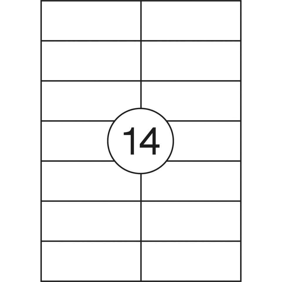 Étiquettes blanches multifonctionnelles de marque Office Products, au format A4 (21 x 29,7 cm), avec coins carrés, conçues pour l’impression sur copieurs, imprimantes à jet d’encre ou laser. Le lot comprend 100 feuilles, chaque feuille contenant 14 étiquettes de 105 x 42,3 mm, soit un total de 1 400 étiquettes, idéales pour l’organisation, l’identification et l’expédition.