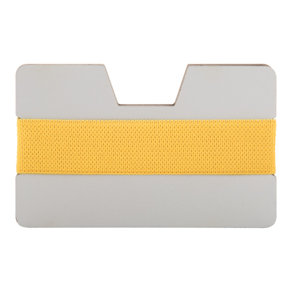 Le StriCard jaune blanc est un porte-cartes élégant en bois HDF équipé d'une bande élastique en caoutchouc permettant de maintenir solidement vos cartes de crédit et cartes de visite lors de vos déplacements professionnels.