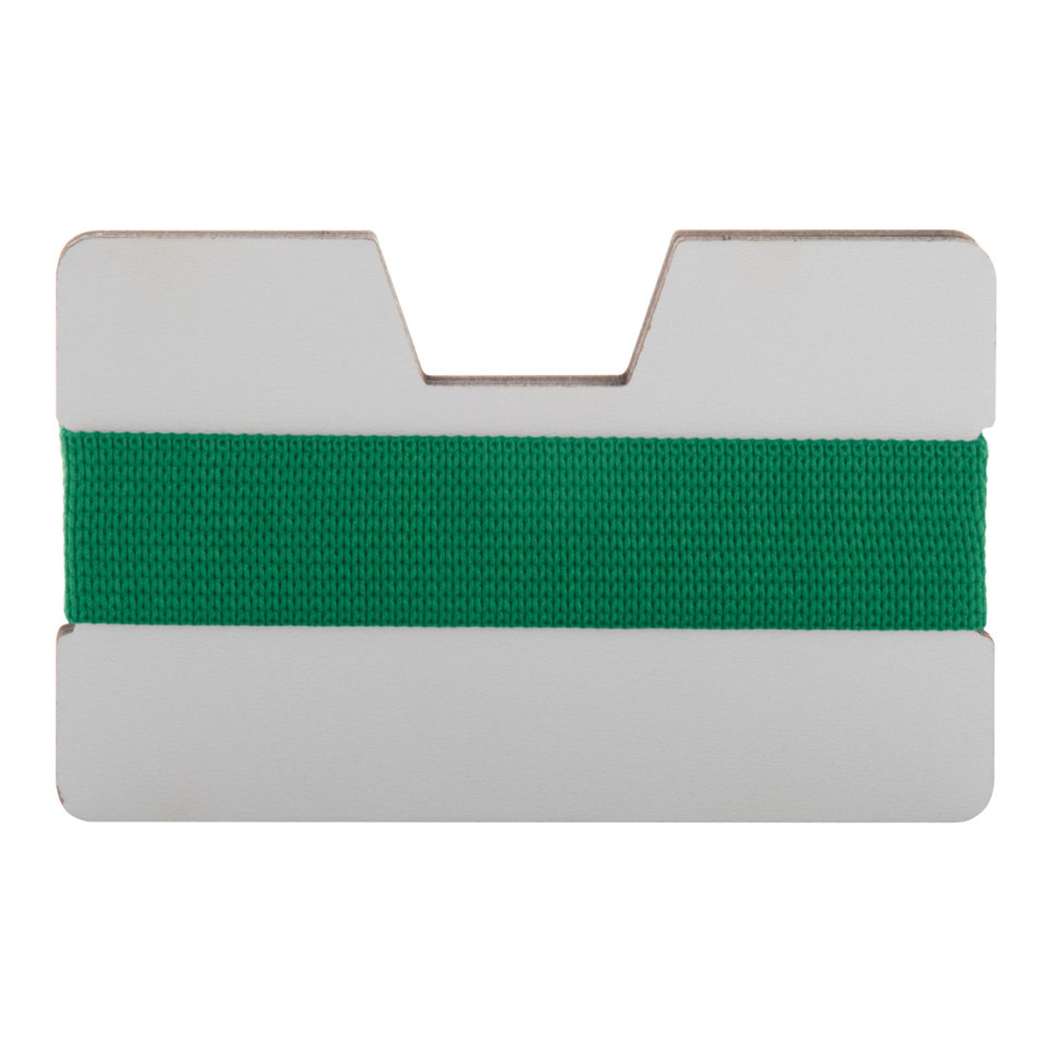 Porte-cartes compact en bois HDF vert et blanc équipé d’une bande élastique en caoutchouc pour sécuriser vos cartes de crédit au quotidien. Parfait pour garder l’essentiel toujours à portée de main.