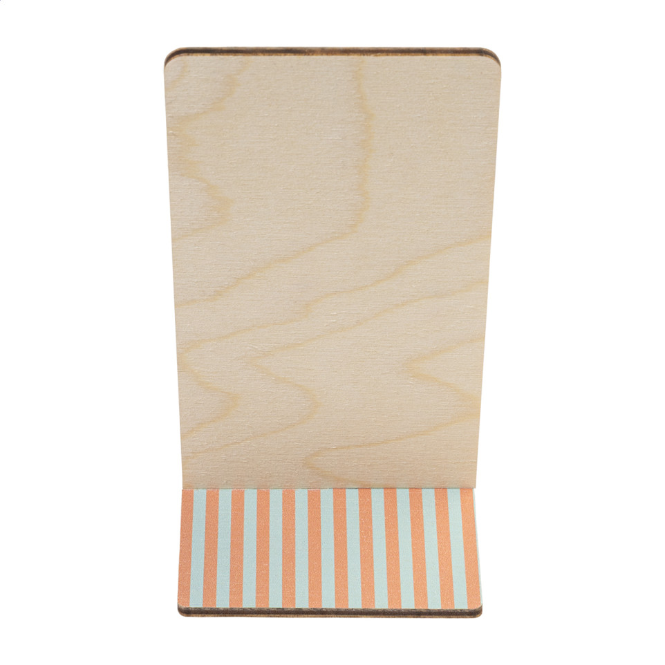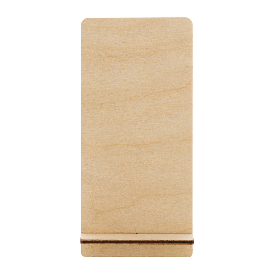 Support de bureau pour téléphone portable fabriqué en contreplaqué de bouleau naturel, idéal pour maintenir son smartphone en position inclinée lors d'une utilisation quotidienne au bureau.