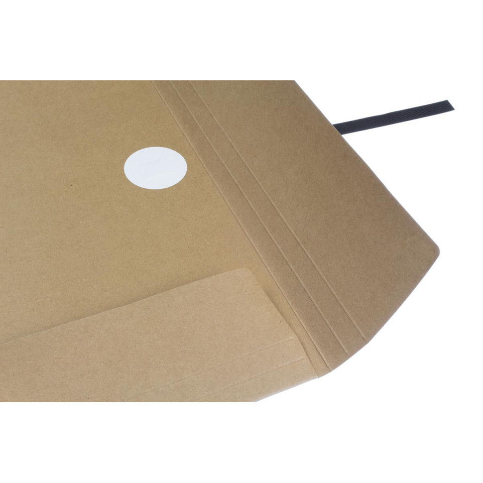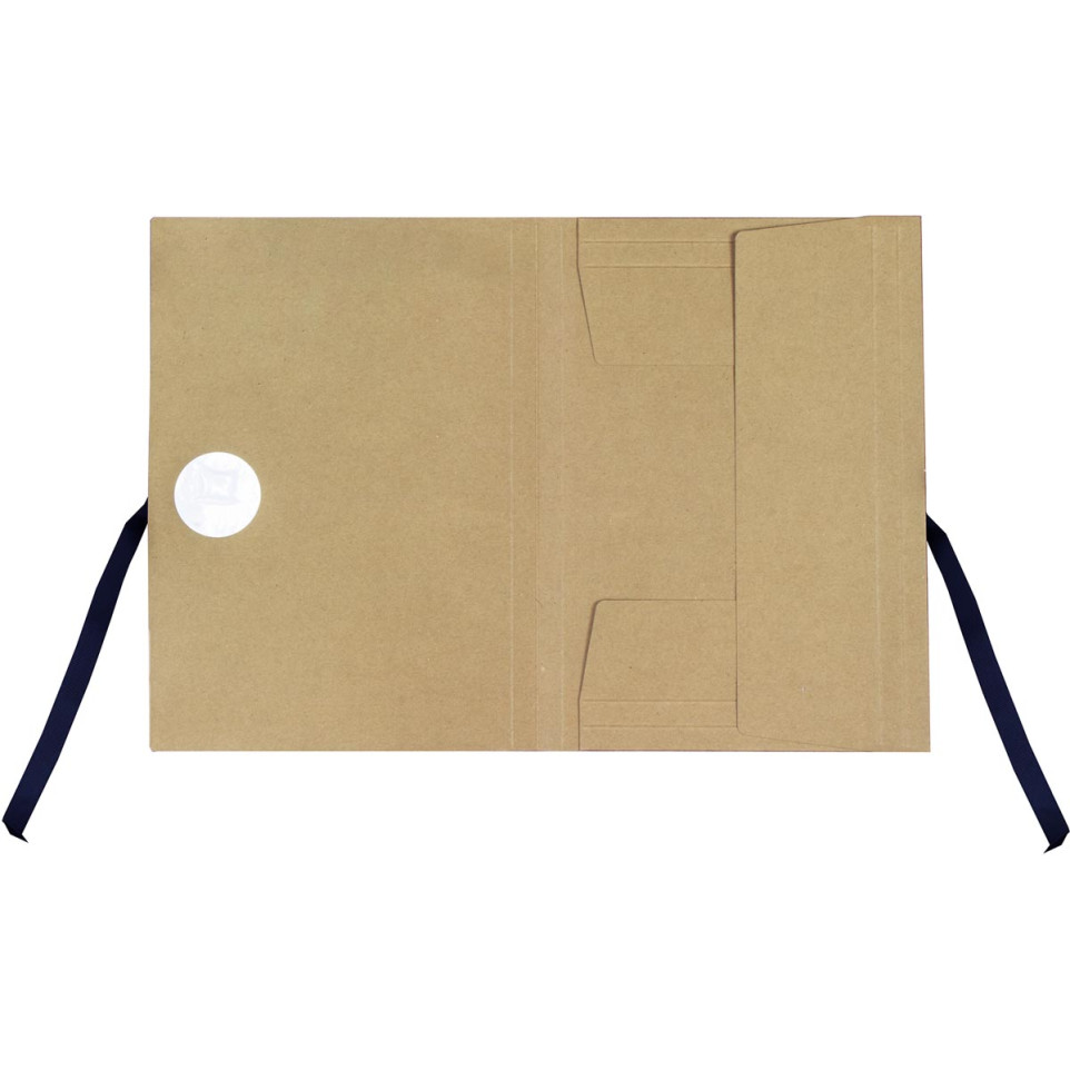 Les trois rabats intérieurs garantissent le maintien des documents ; les rubans assurent la fermeture.