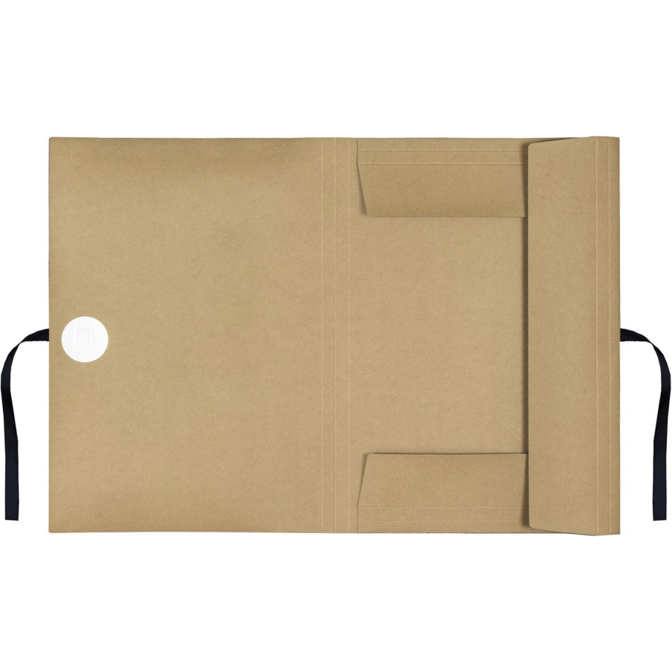 Ouvrez la farde, insérez vos dessins ou documents au format A3 entre les rabats, puis refermez à l’aide des rubans pour sécuriser l’ensemble. Les côtés plissés offrent une capacité supplémentaire pour les projets volumineux ou les séries de feuilles.