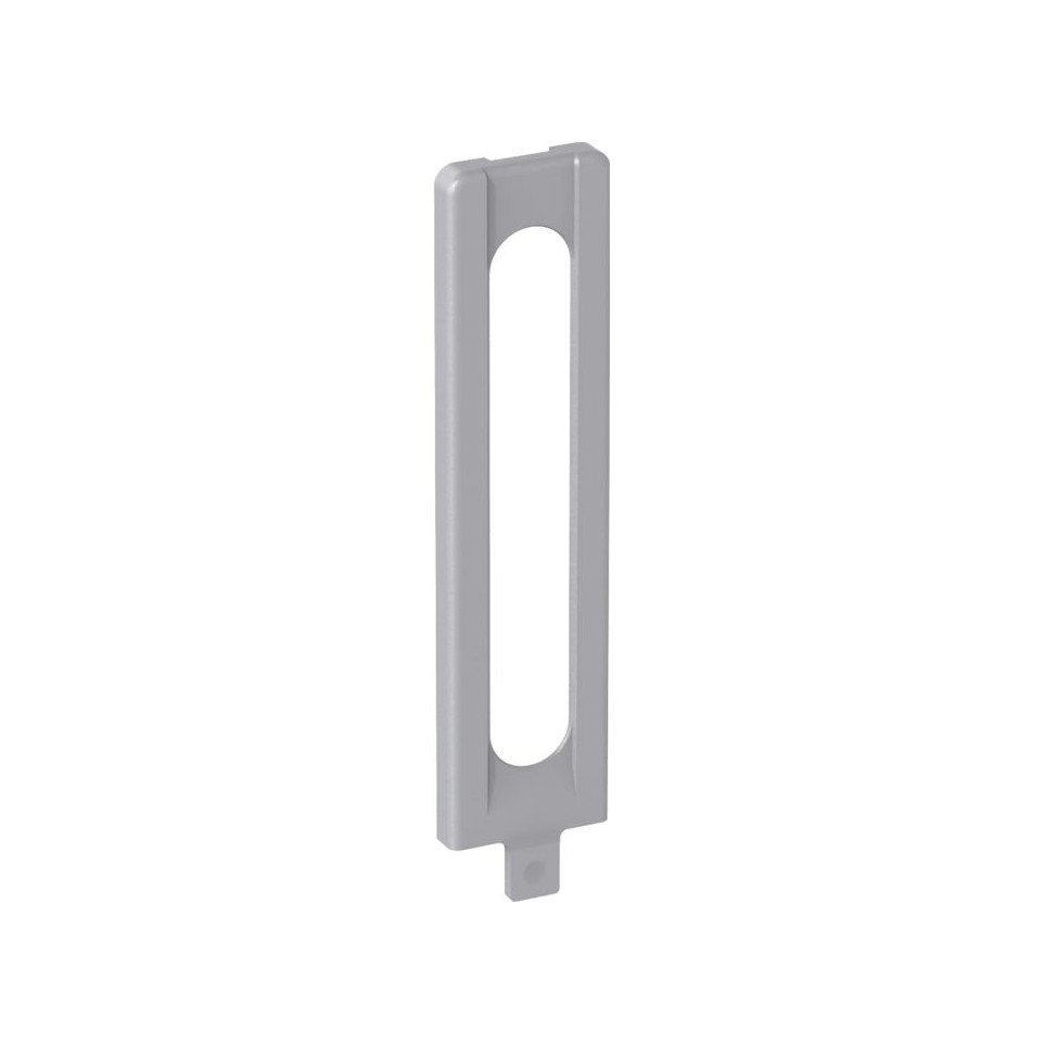 Cache palier d'angle DT/PVC long gris clair de la marque Maco, conçu pour protéger et masquer les points de pivotement ou de fixation des ferrures sur portes et fenêtres en PVC. Idéal pour garantir une finition soignée et discrète dans l’aménagement intérieur ou extérieur.