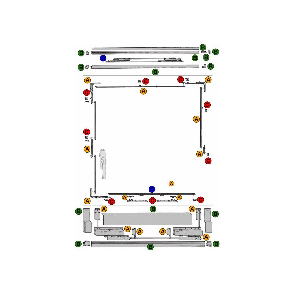 Set de compas Roto pour ferrures coulissantes, conçu pour le système Patio ALU 150S. Adapté aux portes et fenêtres en aluminium à châssis ouvrant, il garantit des mouvements précis et fiables sur des vantaux de grandes dimensions.