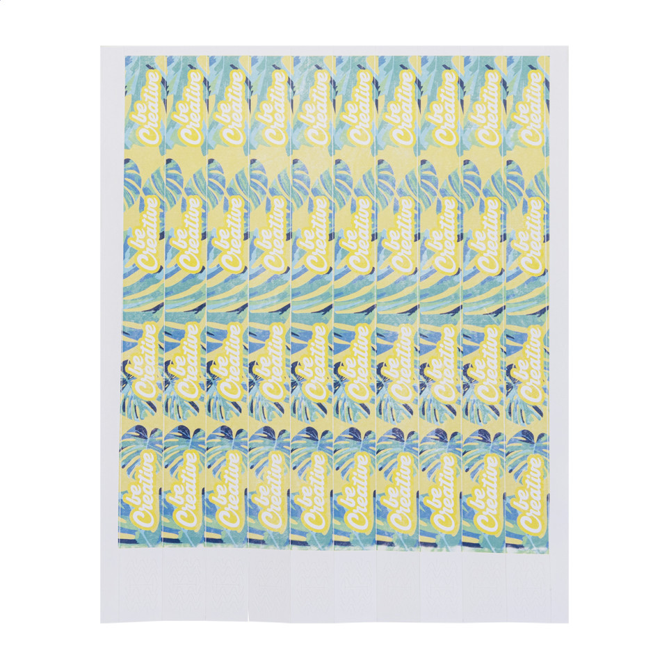 Planche de 10 bracelets Tyvek Wristvek Creative blancs, largeur 19 mm, idéale pour identifier les participants lors de festivals, événements festifs ou manifestations sécurisées.