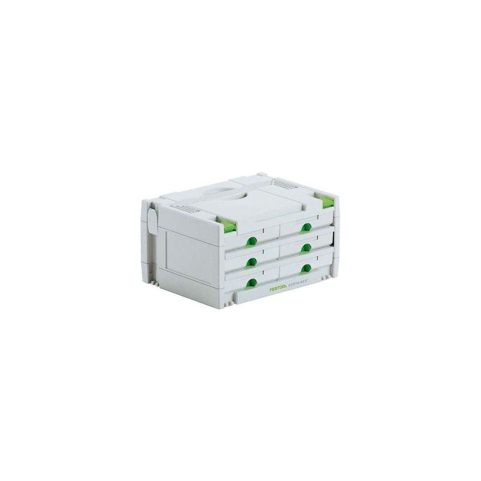Coffre sortainer Festool SYS 3-SORT / 6, conçu pour organiser, stocker et transporter efficacement vis, chevilles, accessoires et petites pièces sur chantier ou en atelier. Idéal pour les professionnels exigeant une organisation optimisée et durable.