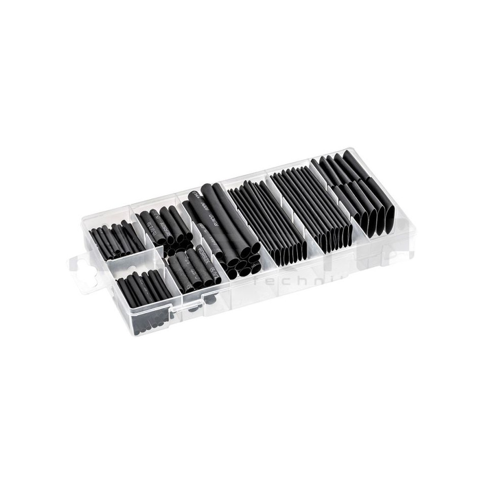 Coffret de 127 gaines thermorétractables conçu pour l'isolation, la protection et la réparation de câbles électriques dans divers environnements techniques ou domestiques. Adapté aux travaux de fixation et de maintenance électrique sur sites industriels comme en atelier.