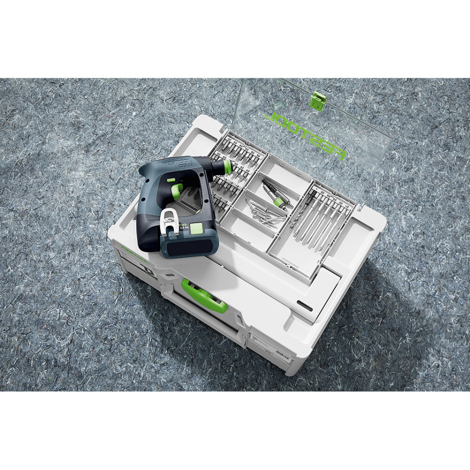 Perceuse-visseuse sans fil compacte Festool CXS 12-Set, idéale pour les travaux de perçage et vissage en espaces restreints. Conçue pour les professionnels exigeant légèreté, maniabilité et efficacité dans l’assemblage, la pose ou la finition.
