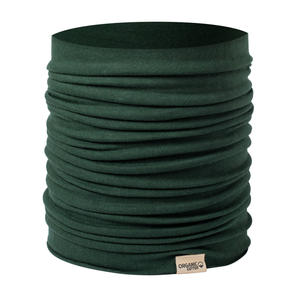 Bandeau vert foncé multifonctions pouvant servir d’écharpe, accessoire de coiffure ou de protection contre le froid, conçu pour apporter confort et style au quotidien ou lors d’activités extérieures.
