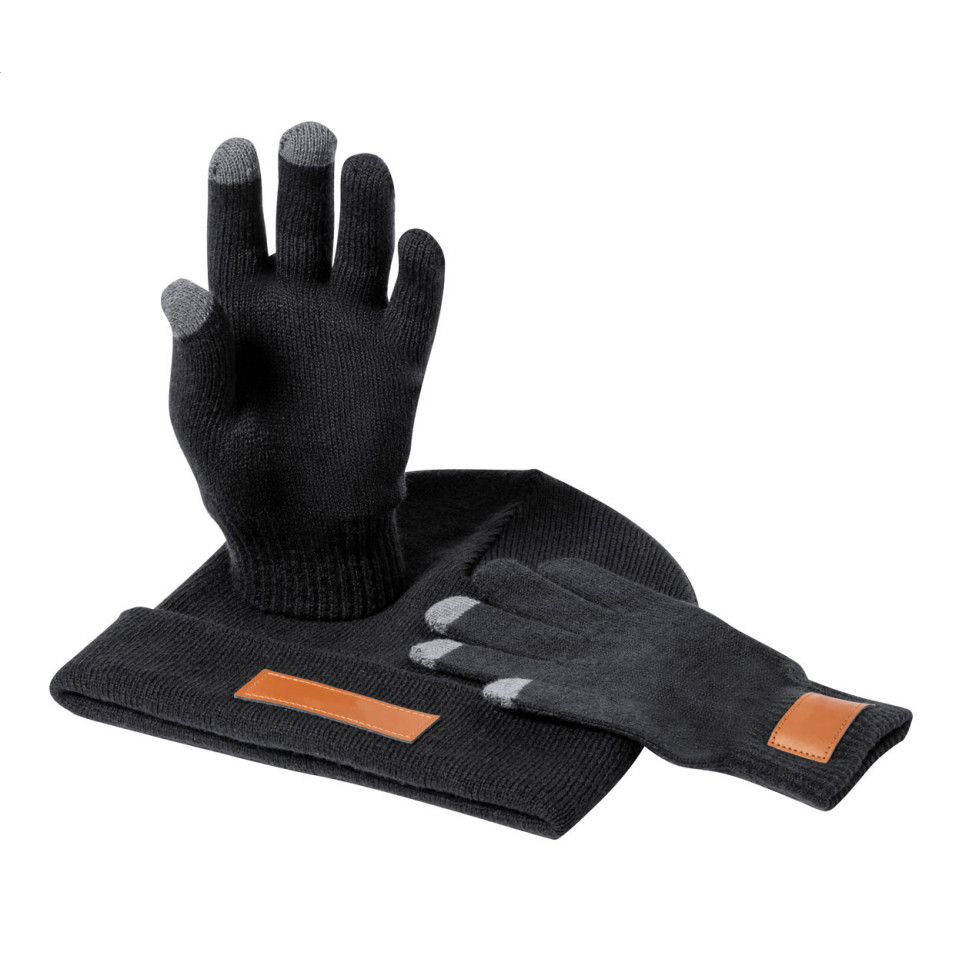 Set élégant associant un bonnet d'hiver et des gants tactiles, parfait pour affronter les températures hivernales tout en restant connecté. Ces accessoires fonctionnels constituent un cadeau promotionnel pratique et apprécié.