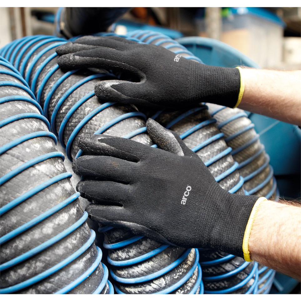 Conçus pour la sécurité et le confort, les gants Arco Grip Lycra Latex Black constituent un équipement essentiel pour les travailleurs manipulant des matériaux rugueux comme les briques et les blocs de maçonnerie. Leur revêtement en latex résistant à l'abrasion assure une protection fiable, tandis que les paumes en latex crisselées offrent une prise solide dans les conditions humides ou sèches. Les manchons en coton sans couture de 10 deniers, associés à de l'elastane, garantissent un confort durable. La construction en Lycra et coton améliore la dextérité, permettant ainsi d'exécuter des tâches plus complexes. Ces gants sont également résistants à l'abrasion et aux déchirures.