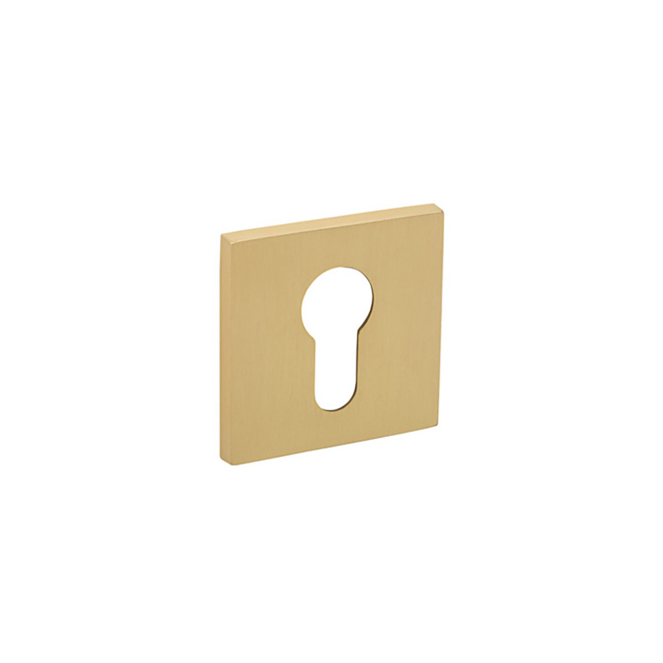 Paire d'entrées de cylindre carrées Tupai 4049 5SQ, dimensions 52 x 52 mm et épaisseur 5 mm, finition laiton satiné. Idéal pour équiper des portes nécessitant une sécurité renforcée avec un design contemporain.