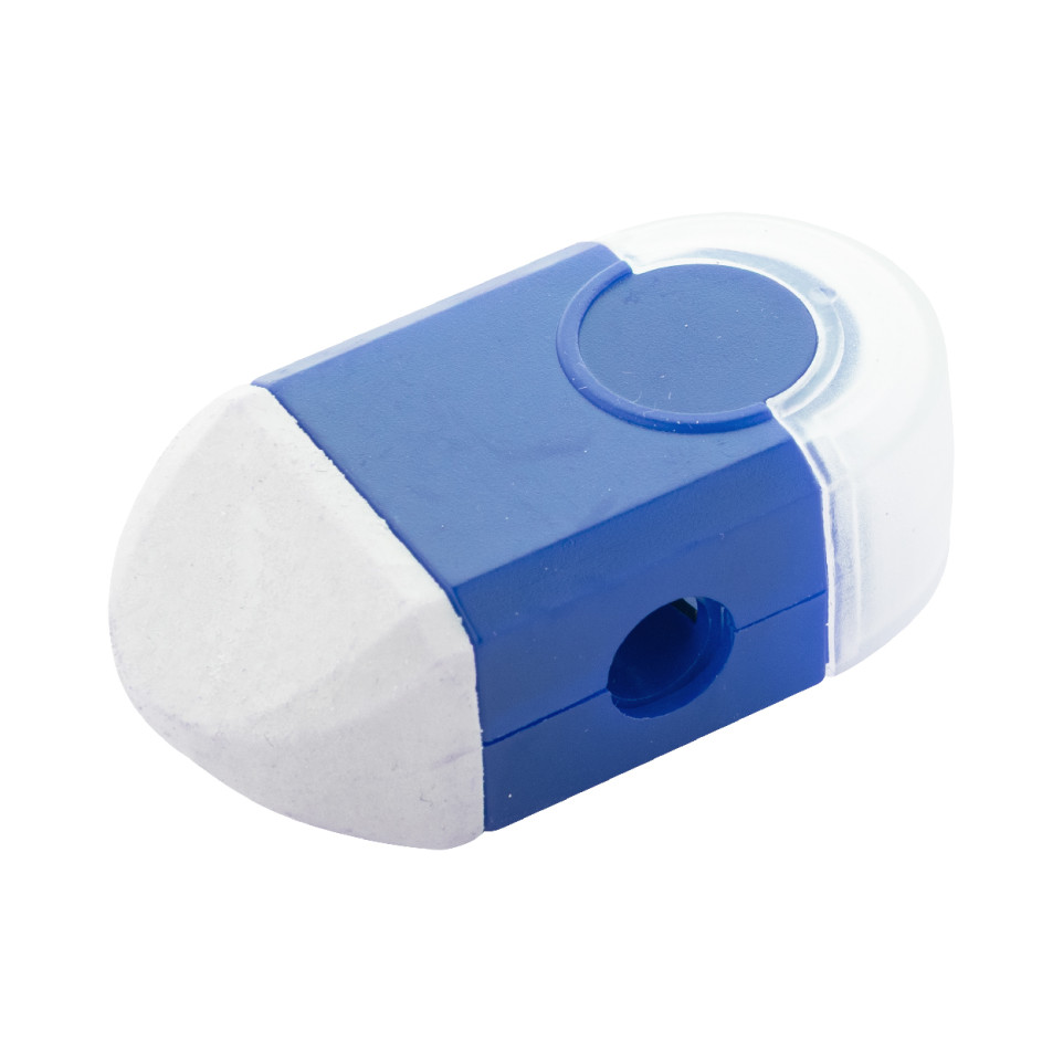 Set combiné taille-crayon et gomme dans une boîte compacte assortie bleu blanc, idéal pour l’école, le bureau ou les déplacements. Pratique pour garder le matériel essentiel à portée de main lors de vos activités quotidiennes.