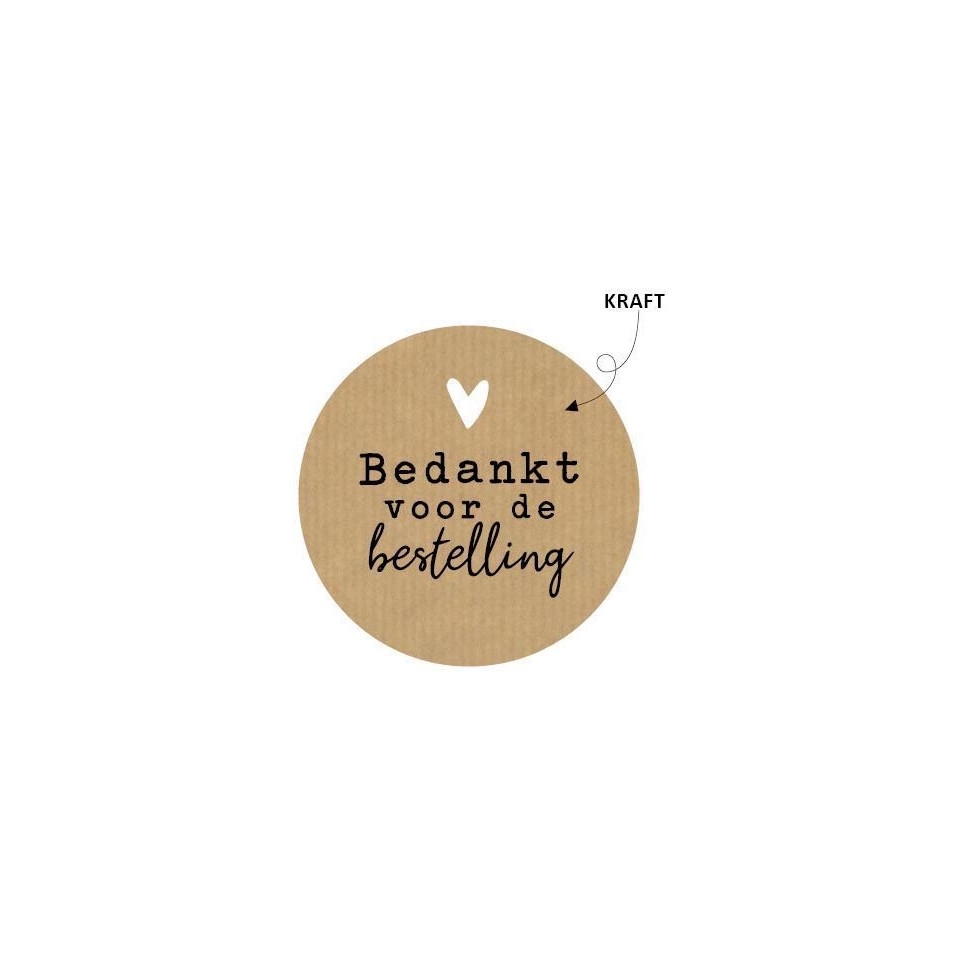Étiquette ronde kraft à message, idéale pour personnaliser vos envois avec un remerciement professionnel. Utilisée en commerce, logistique ou boutique en ligne pour remercier le client de sa commande.