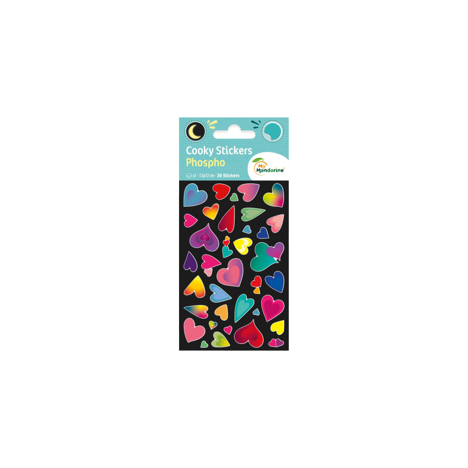 Cooky Phospho, Sach 1 pl 7,5x12cm, Coeurs Amusants et simples d'utilisation, ces petits stickers apporteront couleurs et volume à tous vos projets créatifs ou décorations. De jolis stickers 3D brillants et en relief ! Petit plus ces stickers sont phophorescents, ils brillent le jour et s'illuminent la nuit. Ces gommettes Cooky 3D sont parfaitement adaptées aux activités de scrapbooking, carterie, dessin, peinture ou simplement pour décorer son journal intime, sa coque de téléphone ou ses livres et cahiers. Dimensions de la planche : 7,5x12 cm, dimensions de la pochette : 8x17 cm, Nombre de gommettes dans le sachet : 36, 1 planche. Conforme aux Normes CE, A partir de 4 ans. Ces gommettes développent la motricité, la dextérité et l'imagination de votre enfant.