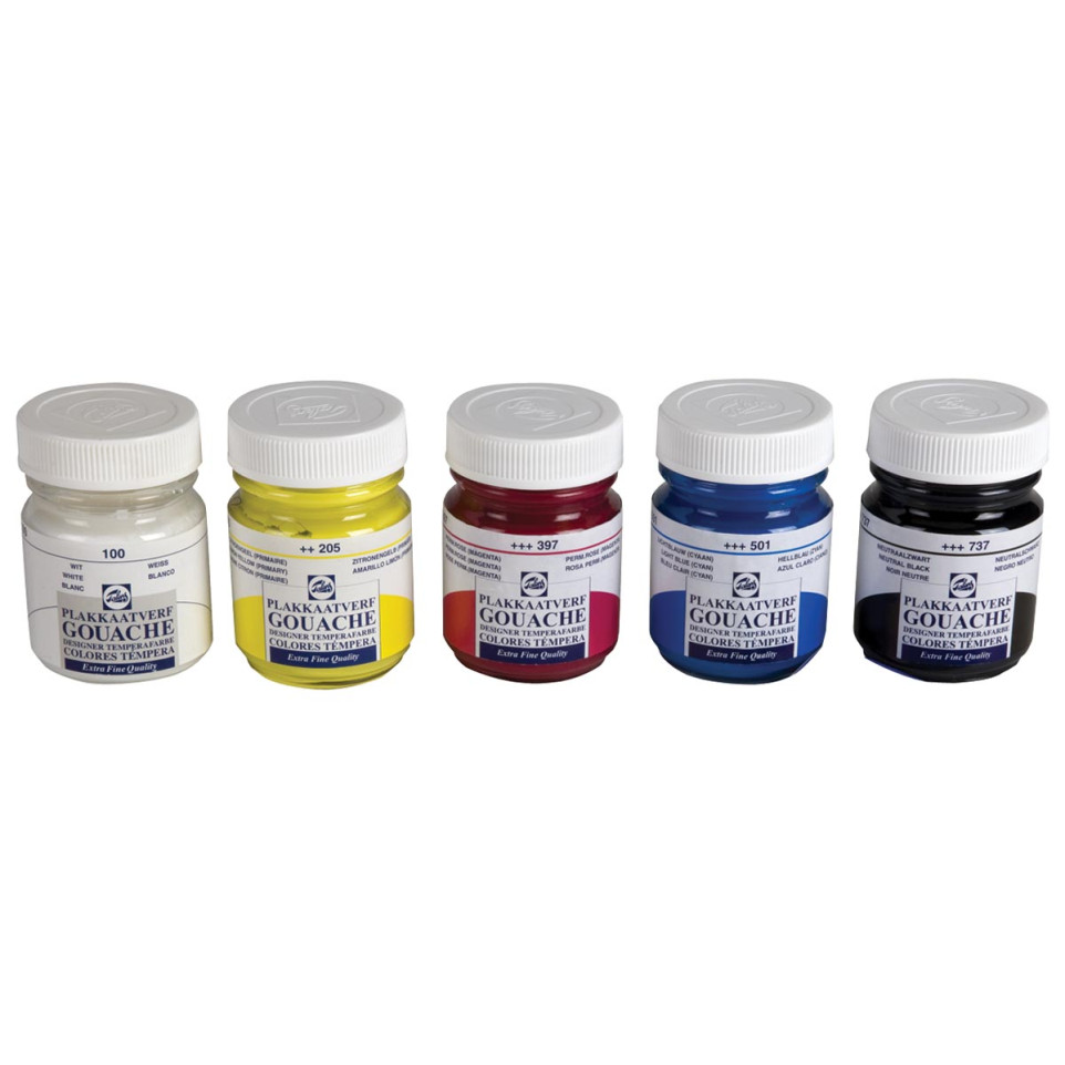 Gouache Extra Fine blanche Talens en flacon de 50 ml, idéale pour les travaux artistiques exigeant une opacité parfaite et un rendu mat. Convient parfaitement aux illustrateurs, designers et artistes recherchant une peinture polyvalente et couvrante.