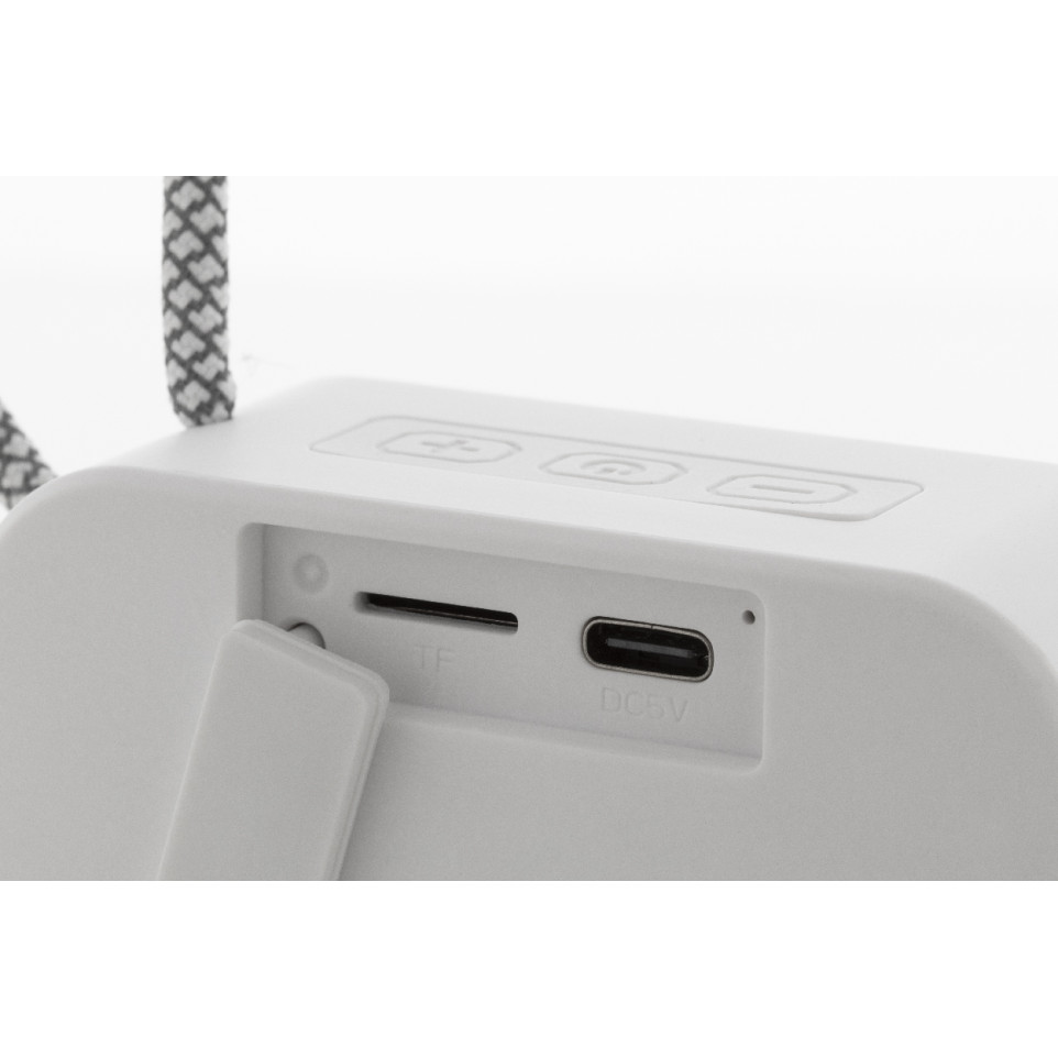 Enceinte sans fil compacte en ABS recyclé, équipée d’une dragonne pratique et d’un filet métallique, idéale pour écouter vos playlists partout ou accompagner vos réunions, déplacements et activités en extérieur.